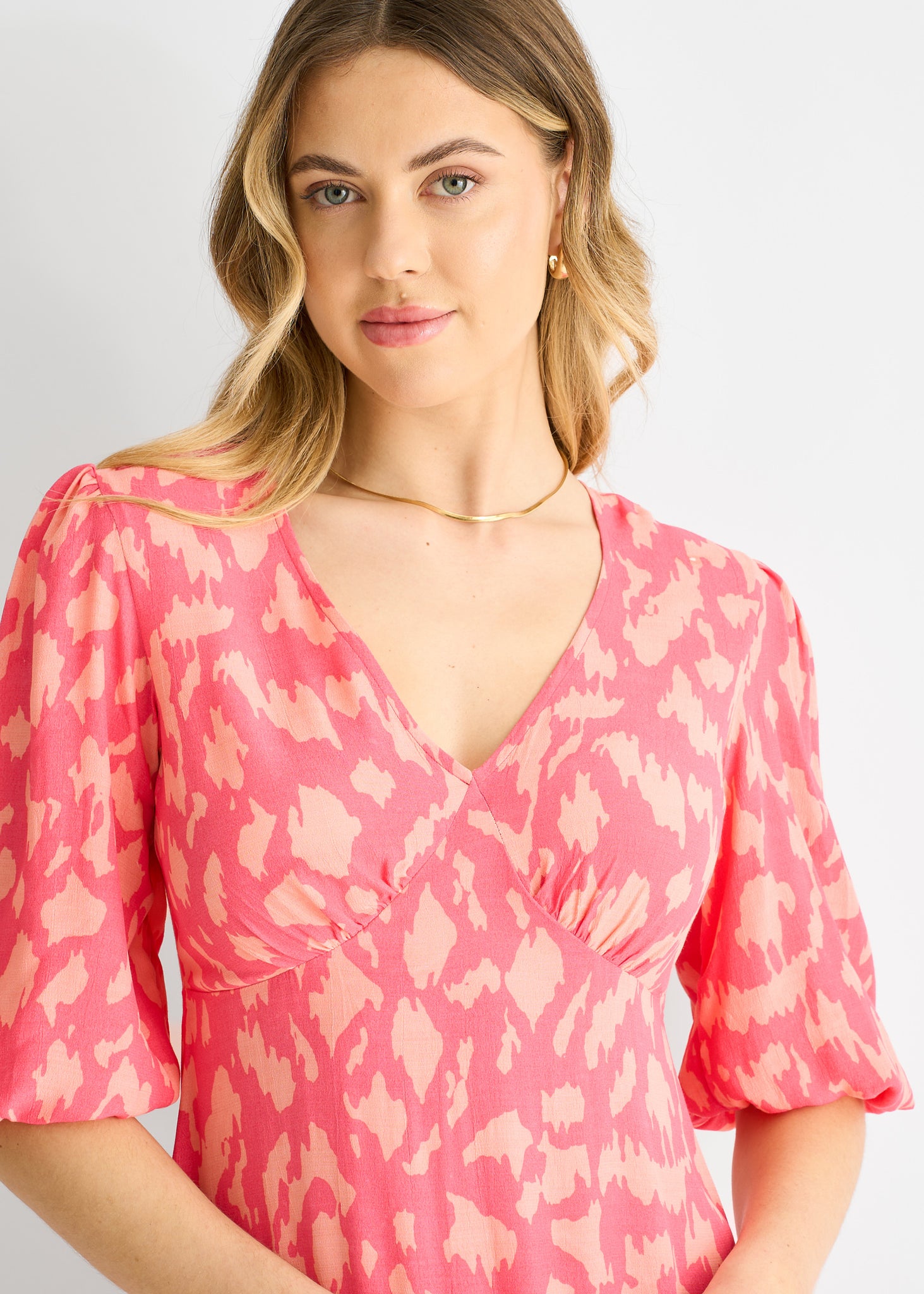 Pink Animal Print Viscose Midi Dress
