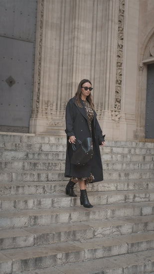 Black Double Breast Longline Belted Trench Coat