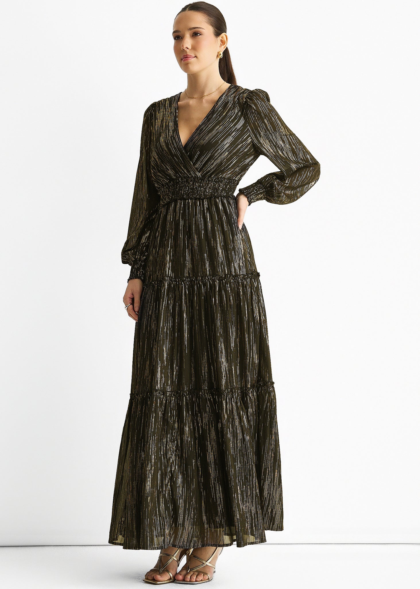 Black Lurex Chiffon Occassion Tiered Maxi Dress