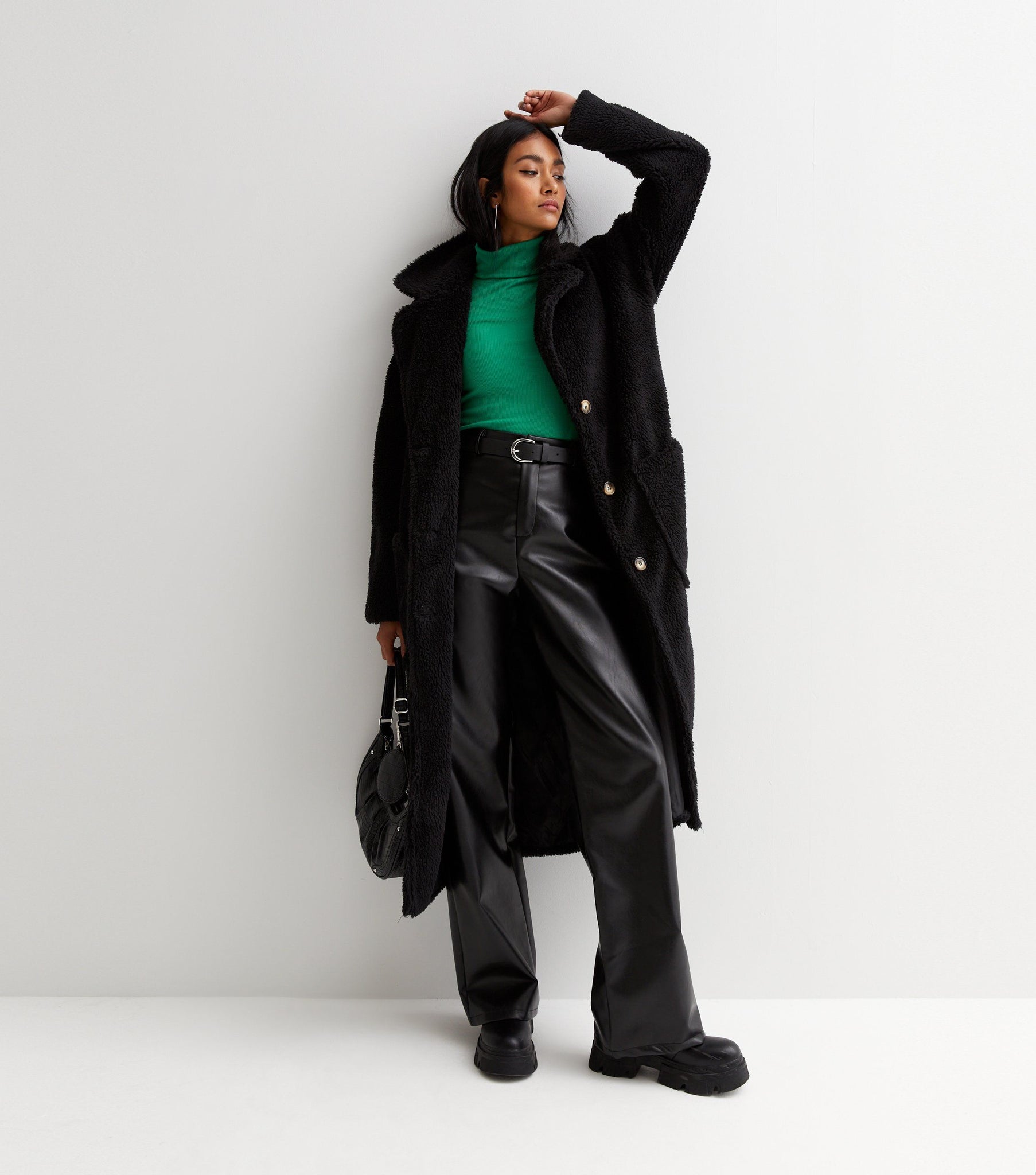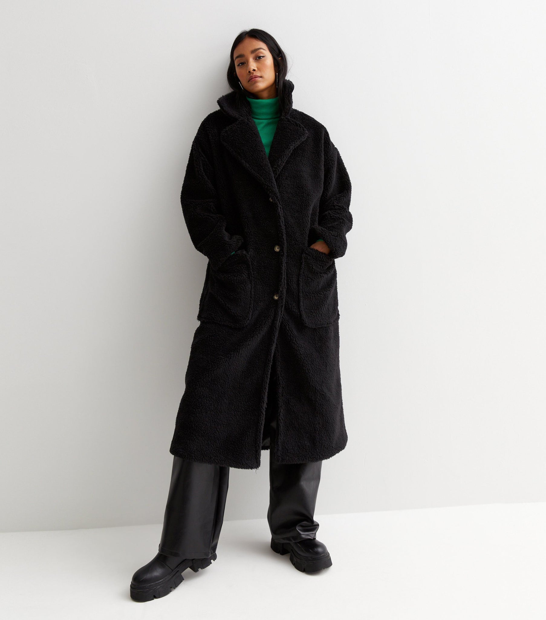 This Black Longline Teddy Coat combines style and comfort to elevate any outfit. Its longline design offers a sleek silhouette while the teddy fabric provides warmth and texture. Perfect for a fashionable and cozy look in colder weather.