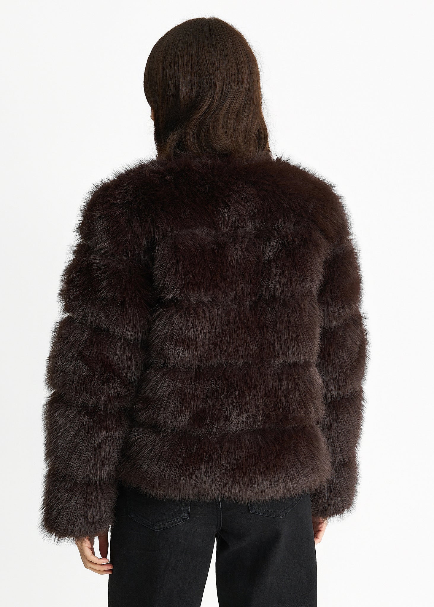 Stay cozy and stylish with the Chocolate Soft Touch Fur Jacket. Its plush, soft-touch fabric offers warmth and comfort, perfect for casual outings or making a bold statement. The rich chocolate color adds a touch of sophistication while keeping your look effortlessly cool. Ideal for layering on chilly days, this jacket combines comfort with standout style.