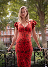 Make a statement in the Red V Neck Floral Print Ruffle Maxi Dress, designed for effortless style and comfort. Its flowing silhouette and delicate ruffle details create a casual yet bold look, perfect for daytime outings or relaxed evenings. The vibrant floral print adds a touch of lively charm, while the soft fabric ensures all-day ease.