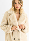 Beige Faux Fur Double Breasted Longline Jacket