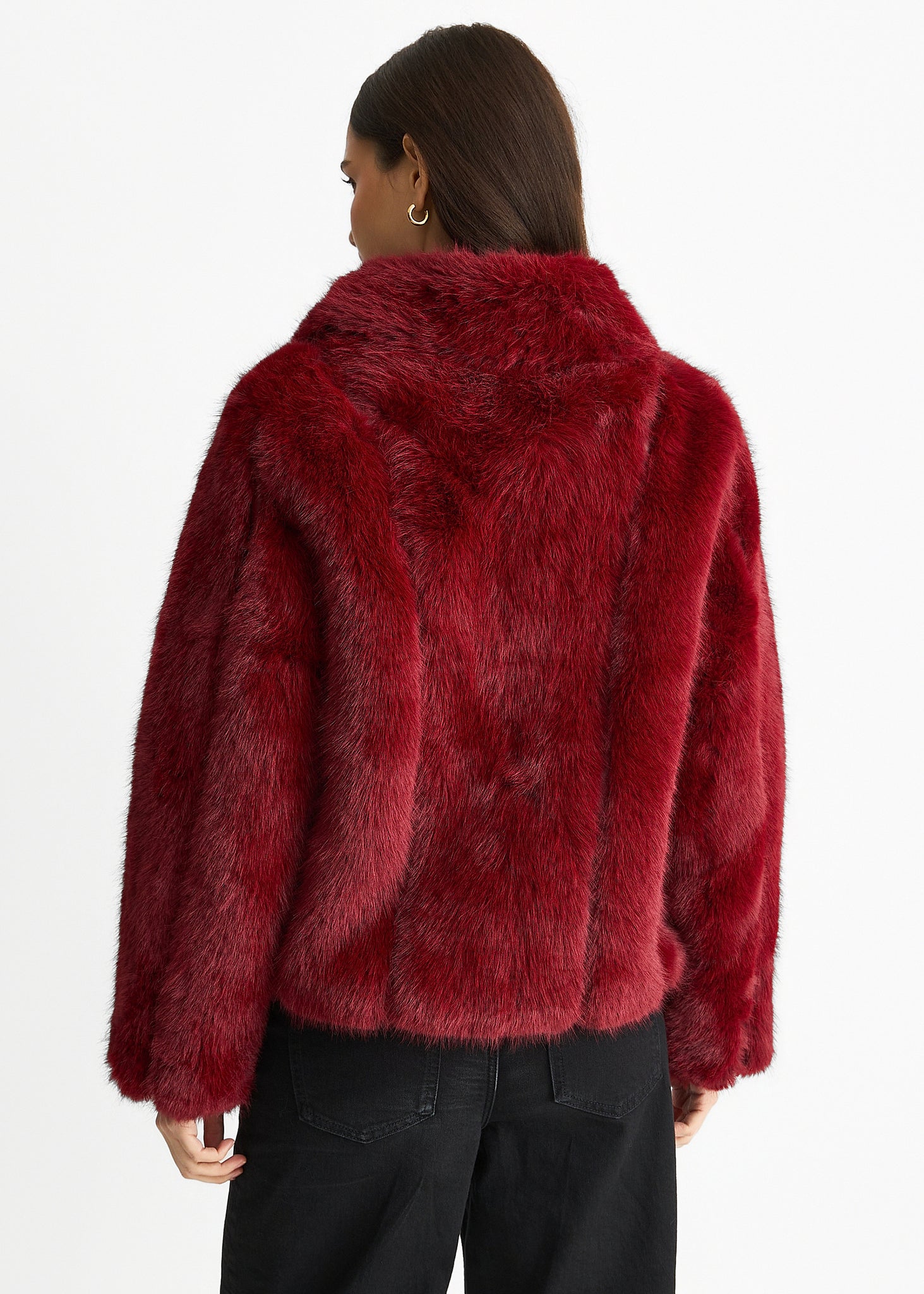 This Burgundy Zip Front Faux Fur Short Jacket is the perfect addition to your winter wardrobe. Made with luxurious faux fur, the deep burgundy color adds a touch of sophistication to any outfit. The zip front design allows for easy styling, while keeping you warm and comfortable.