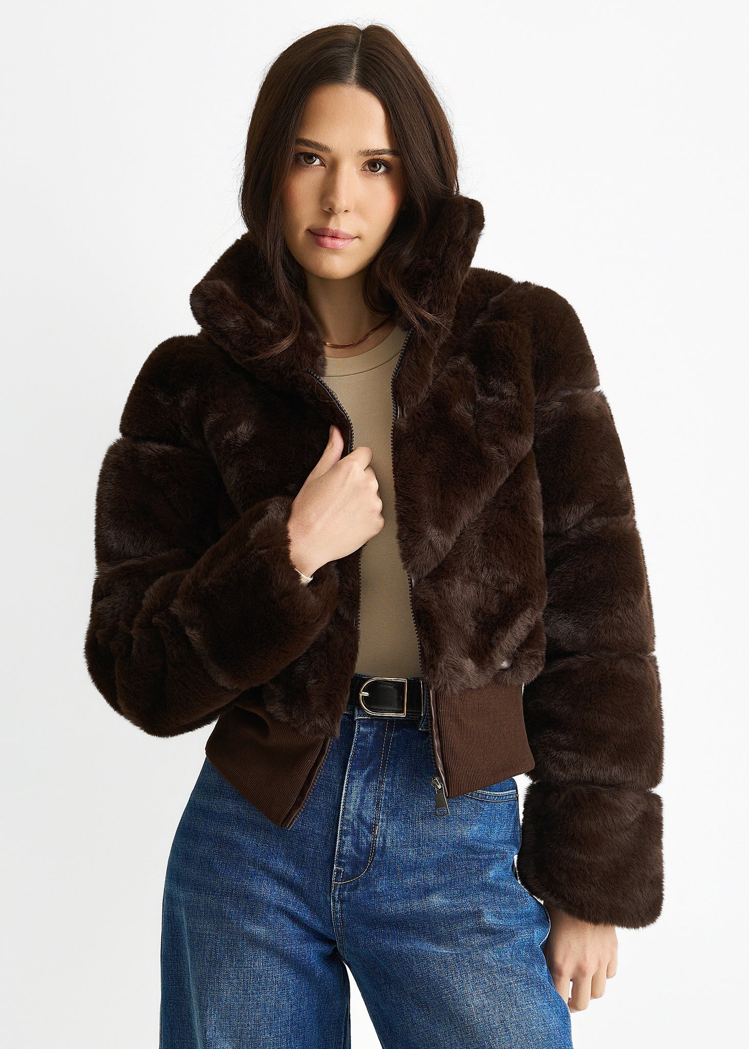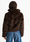 Indulge in luxurious fashion with our Chocolate Faux Fur Zip Front Short Jacket. This jacket combines warmth and style with its soft faux fur material and trendy zip front design. Perfect for any fashion-forward individual looking to elevate their wardrobe and stay cozy in the colder months.