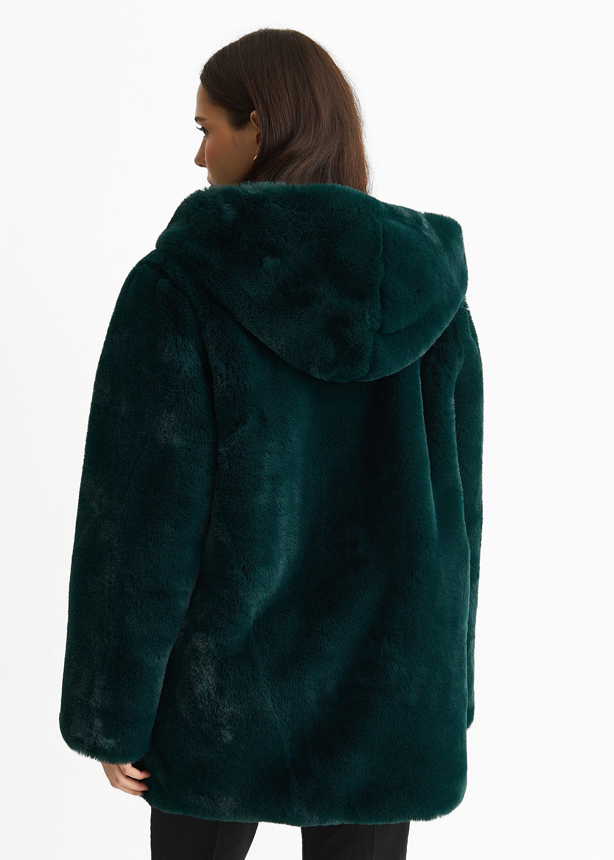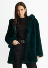 Emerald Green Hooded Long Sleeve Faux Fur Jacket