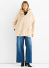 Stone Hooded Long Sleeve Faux Fur Jacket