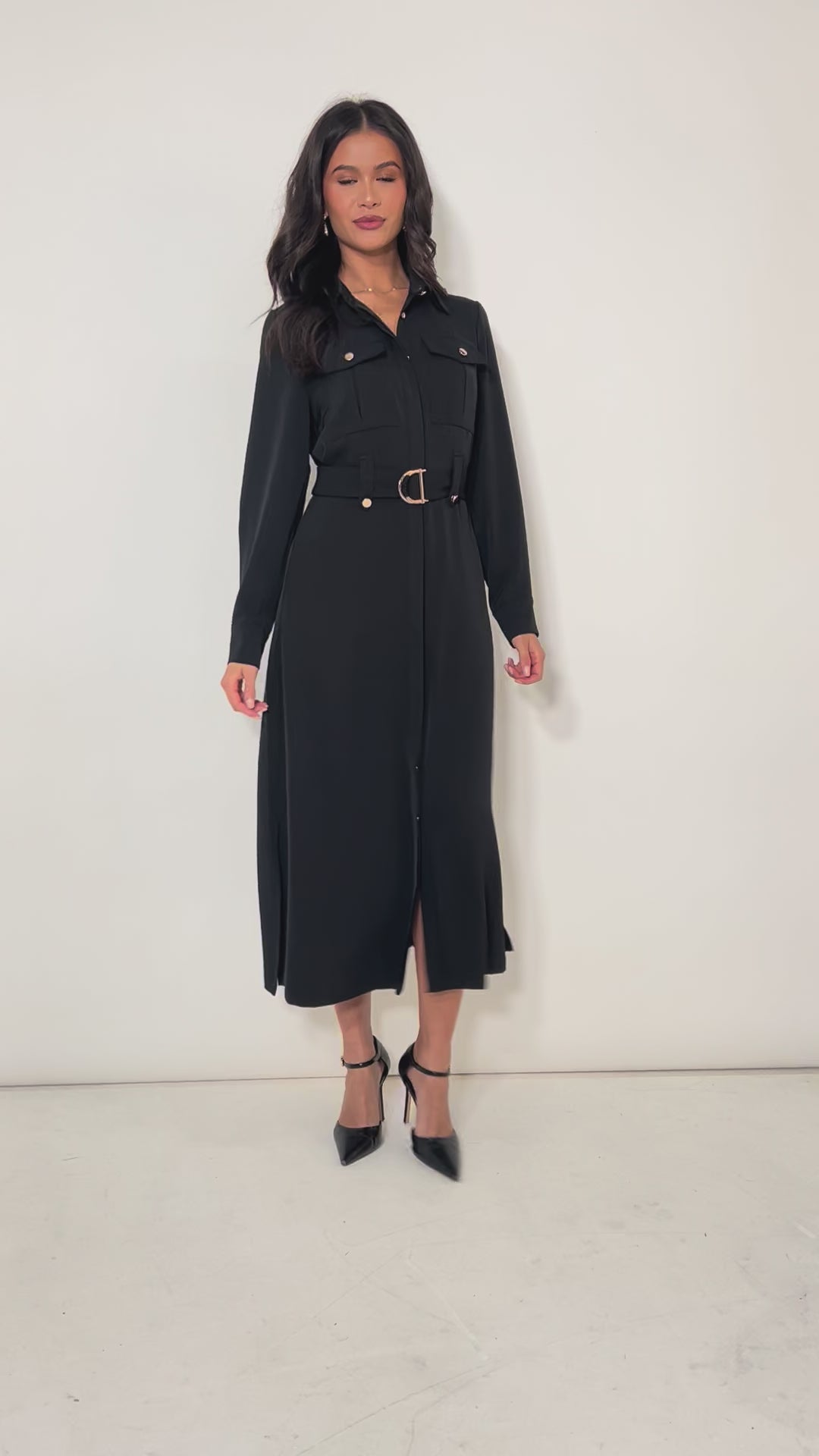 Elevate your everyday with this statement shirt dress, a classic style with a modern twist. Crafted in luxe fabric, it features bold gold button detailing and practical utility pockets for effortless style. The relaxed silhouette works solo or layered, making it a versatile wardrobe essential that transitions seamlessly from day to night.