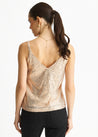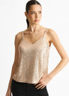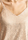 Step out in style with our Champagne Sequin V Neck Cami Top. The elegant sequin embellishments and flattering V neckline make this top perfect for any fashion-forward occasion. Pair it with trousers for a classy look or jeans for a more casual ensemble. You'll sparkle wherever you go!