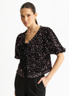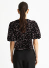 Purple Velvet Sequin Bow Front Bubble Sleeve Top