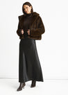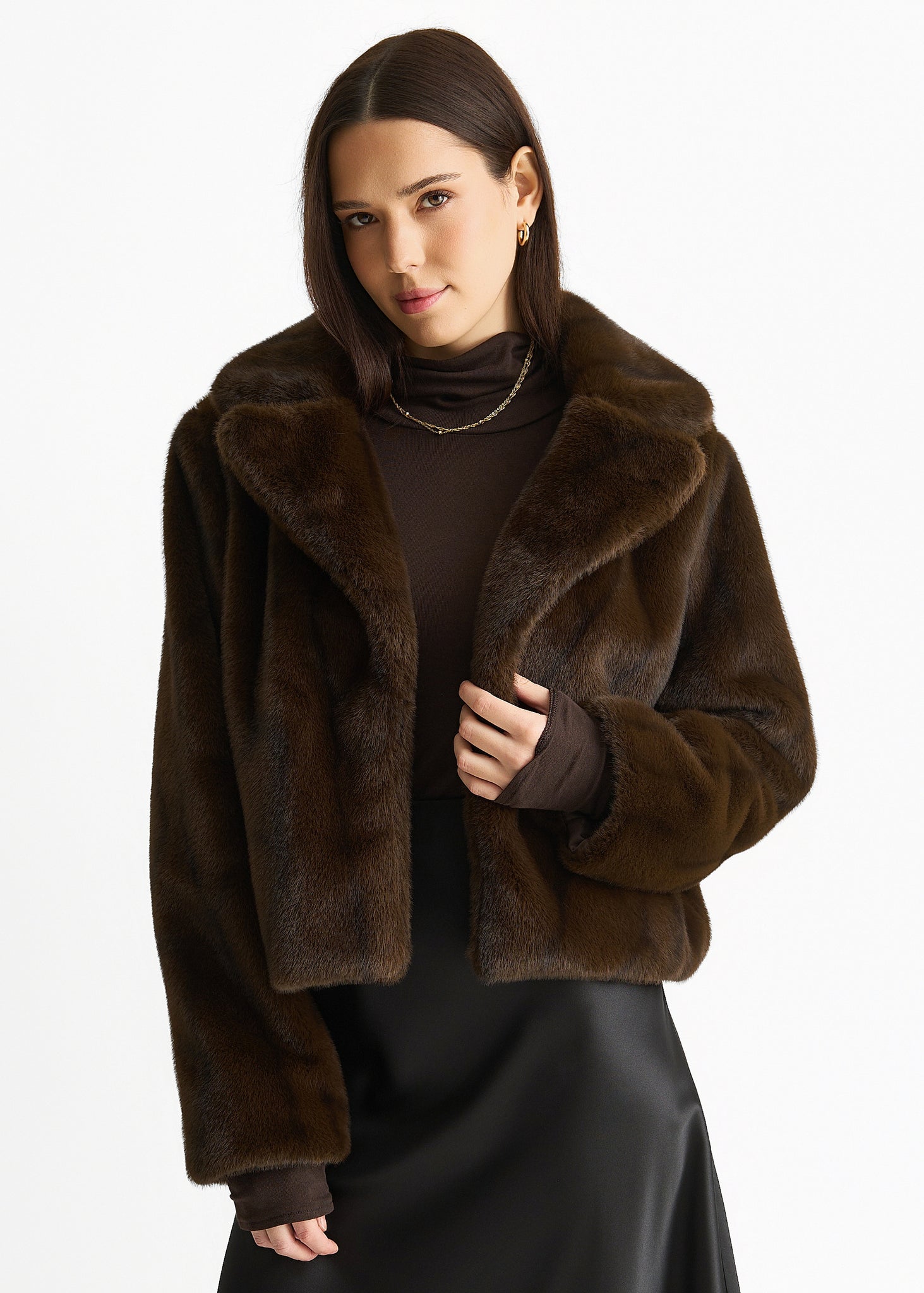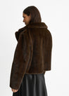 Coffee Crushed Look Faux Fur Cropped Jacket